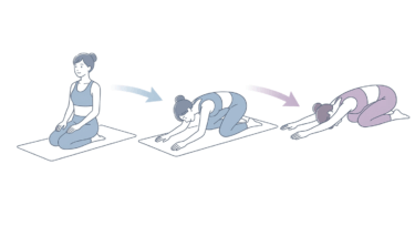 針の糸通しのポーズ(パルスヴァ・バラーサナ)は、四つん這いの姿勢から片腕を深く滑らせ、肩や背中を心地よくねじる動作です。デスクワークや家事で凝り固まった肩甲骨周りの筋肉を多角的にストレッチし、首から肩にかけての緊張を深く解放する効果があります。